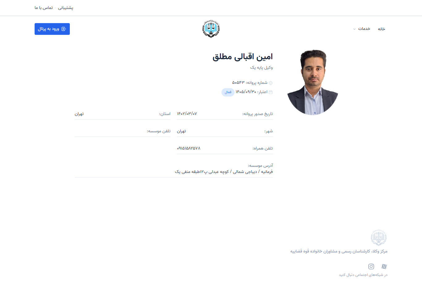 عضویت: مرکز وکلای قوه قضاییه