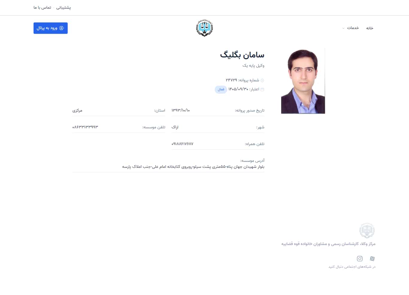 وکیل پایه یک دادگستری، آقای سامان بگلیگ، با شماره پروانه وکالت ۲۴۷۲۹ و عضویت در مرکز وکلای قوه قضائیه استان مرکزی، در شهر اراک فعالیت میکنند. ایشان در زمینههای مختلف حقوقی از جمله حقوق خانواده، کیفری و ملکی تخصص دارند. برای دریافت مشاوره حقوقی یا تنظیم وقت ملاقات، میتوانید از طریق شماره تماس ۰۸۶۳۳۱۳۳۹۹۳ با ایشان در ارتباط باشید.