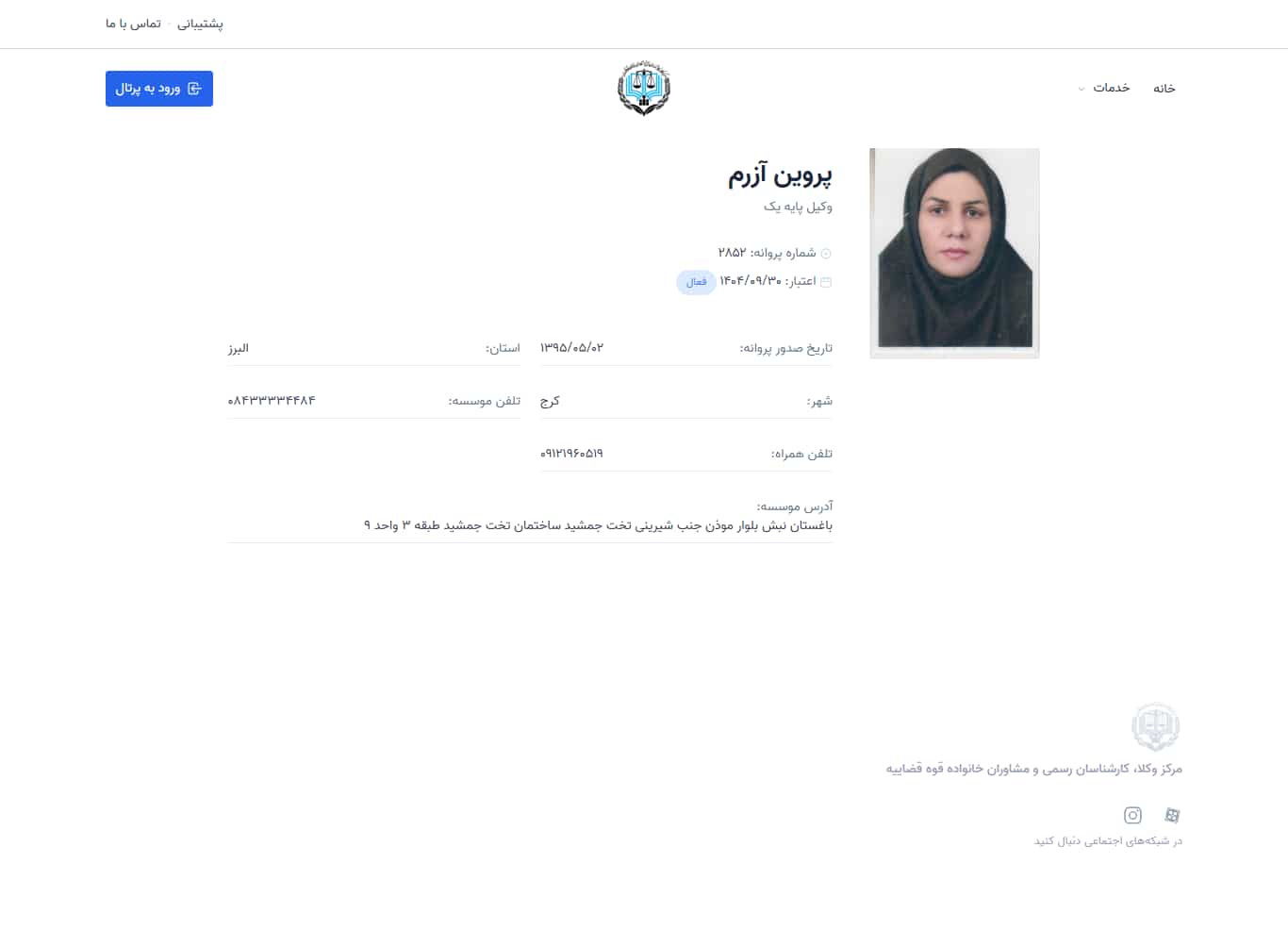 خانم پروین آزرم از وکلای پایهیک دادگستری و عضو مرکز وکلای قوه قضاییه هستند که در شهر کرج فعالیت میکنند. ایشان با شماره پروانه وکالت ۲۸۵۲، در زمینههای مختلف حقوقی از جمله دعاوی ملکی، کیفری، خانوادگی، حقوقی و قراردادها خدمات وکالت و مشاوره تخصصی ارائه میدهند. دفتر وکالت ایشان در کرج، باغستان، نبش بلوار موذن واقع شده است و مراجعان میتوانند با مراجعه حضوری یا تماس، از راهنمایی و خدمات حقوقی ایشان بهرهمند شوند.