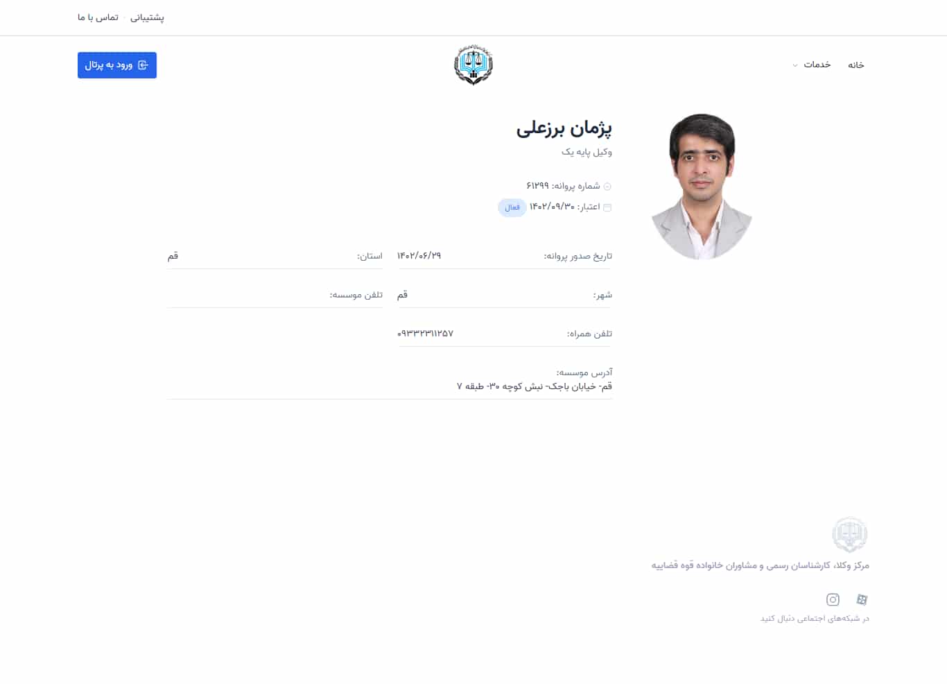 آقای پژمان برزعلی، وکیل پایه یک دادگستری و عضو مرکز وکلای قوه قضاییه با شماره پروانه ۶۱۲۹۹، از وکلای پرتلاش و متعهد استان قم میباشند. ایشان با دانش حقوقی گسترده و تجربهی حرفهای ارزشمند، خدمات وکالتی و مشاورهای را در زمینههای متنوع حقوقی و کیفری به شهروندان ارائه مینمایند.